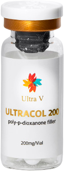 С точки зрения стимуляции коллагена, препарат ULTRACOL 200 мг по покрытию инъецирования площадки кожного покрова, равнозначен постановке 1400 штук моно нитей PDO. Позволяет корректировать области лица, шеи и декольте.