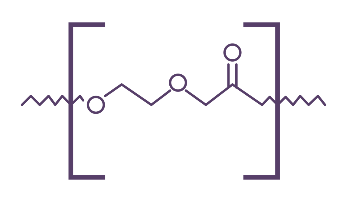 МЕХАНИЗМ БИОРЕЗОРБЦИИ – ГИДРОЛИЗ: {-O-(CH2)2OCH2CO2-}n + H2O ----> олигомер + H2O + CO2